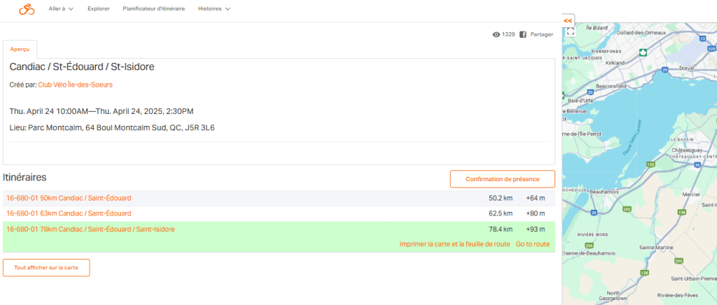 Vous n’avez qu’à cliquer sur le lien “imprimer la carte et la feuille de route”